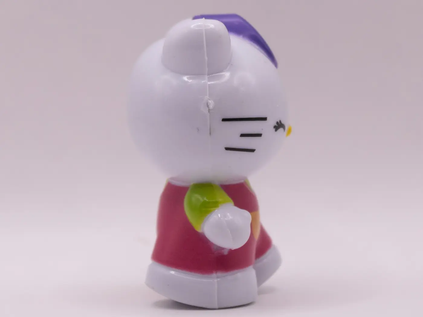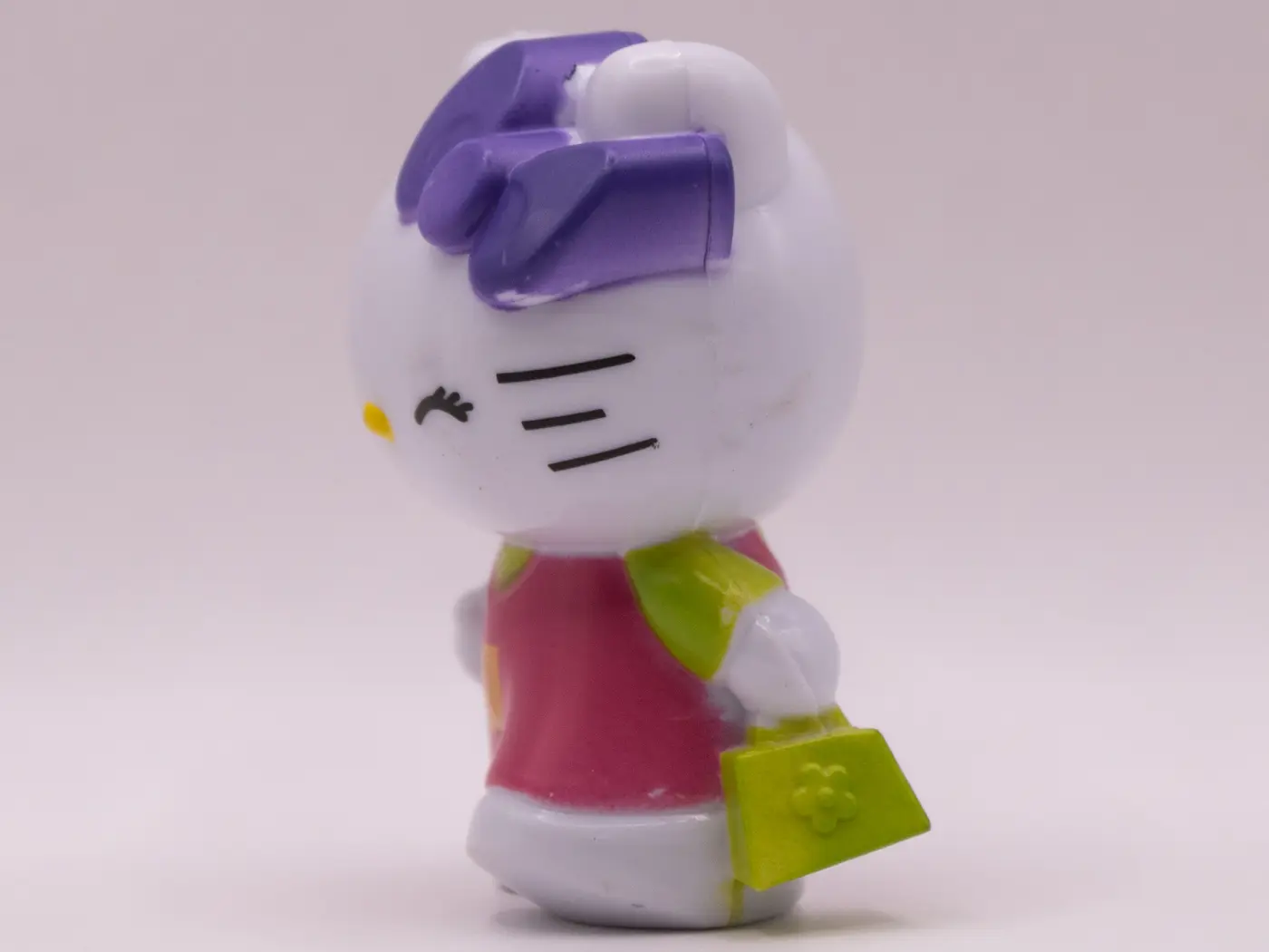 Craquez pour cette adorable figurine Hello Kitty en plastique rose. Avec ses manches vertes et son nœud violet, elle ajoute une touche de douceur à toute collection. Un cadeau idéal pour les fans de ce personnage emblématique.