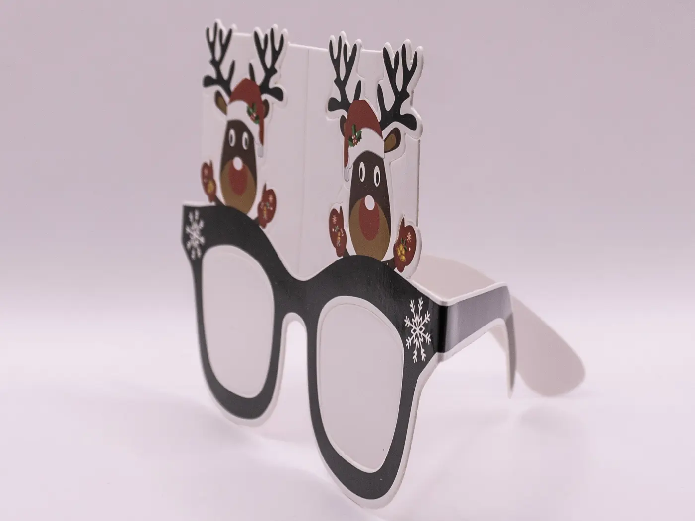 Apportez une touche d’humour et de fantaisie à vos célébrations avec cette adorable paire de lunettes de Noël cerf. Fabriquées en papier léger, elles sont l’accessoire photo de Noël idéal pour créer des souvenirs inoubliables en famille ou entre amis. Le design festif représentant un renne décoré de houx mettra instantanément tout le monde dans l’ambiance des fêtes. Confortables à porter, la longueur des branches est de 13 cm, s’adaptant à la plupart des visages pour un amusement garanti.
