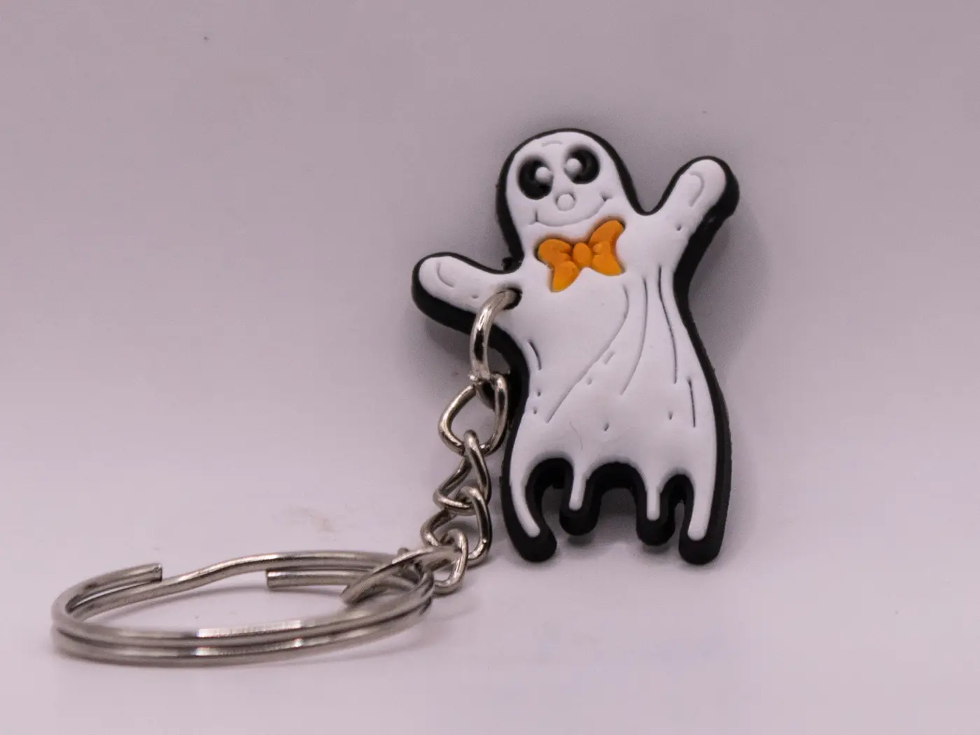 Ajoutez une touche d’Halloween à vos clés avec ce porte-clés Fantôme. Ce petit fantôme blanc en plastique est orné d’un adorable nœud orange, parfait pour célébrer la saison effrayante avec une touche de mignonnerie. Sa matière plastique le rend léger et résistant.