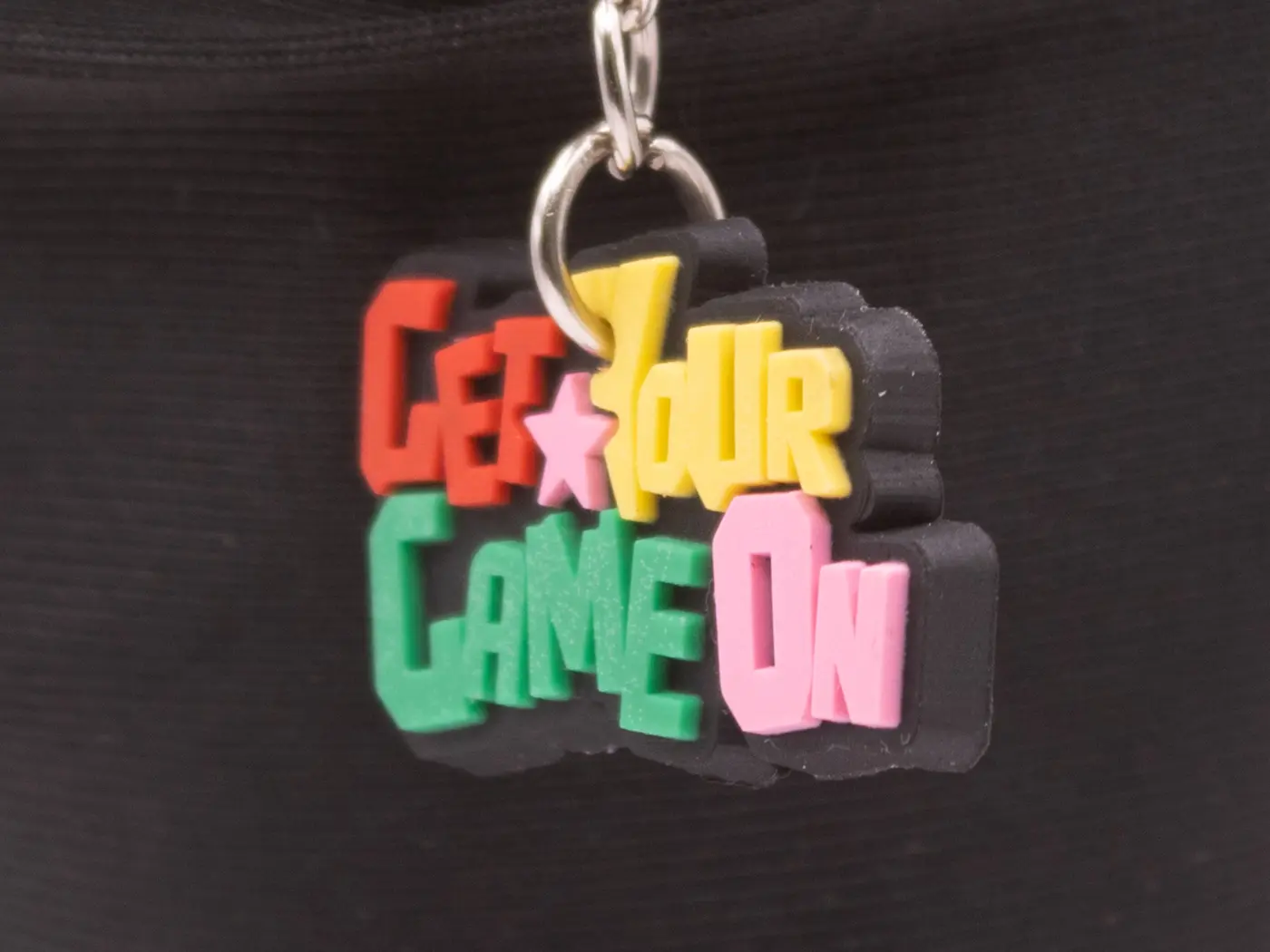 Le porte-clés Get Your Game On est l’accessoire idéal pour afficher votre passion du jeu vidéo. Fabriqué en plastique résistant, ce porte-clés multicolore arbore un design original et accrocheur. “Get Your Game On”, message clair et motivant, vous accompagnera partout.